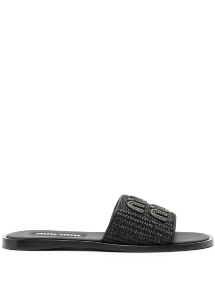 Miu Miu Raffia-effect woven Black slides
